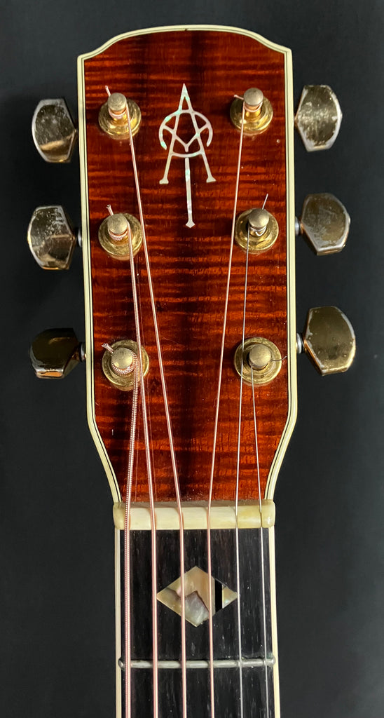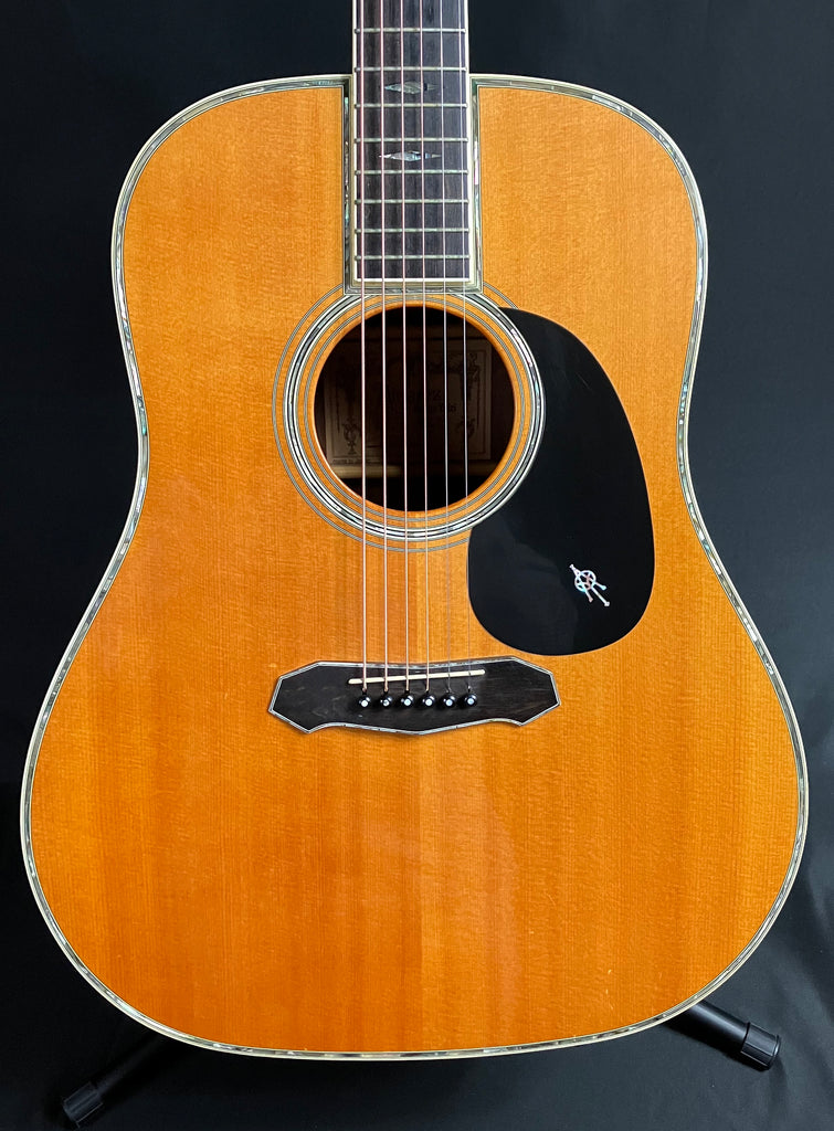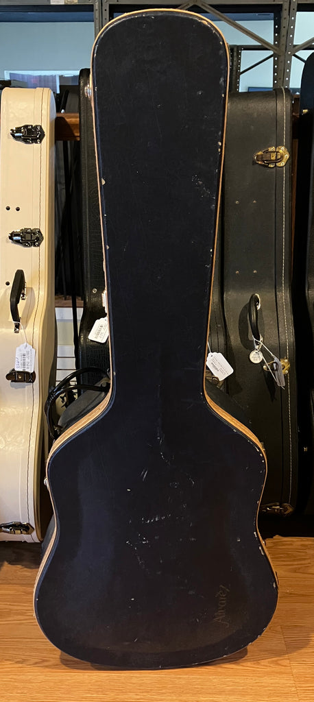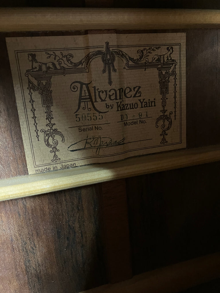 This 1994 Alvarez Yairi DY-91 Flamed Koa Dreadnought Acoustic Guitar is in excellent condition. It has been played by its original owner over the years and shows some light scratches and dings on the body from normal use, but overall, it is very clean cosmetically. The treble side of the fretboard shows some signs of wear on the first 5-6 frets but the guitar chords clearly and easily all the way up the neck. This guitar has been professionally set up and plays great! The neck is straight, the action is low and comfortable and the sounds fantastic! This guitar will come complete with the original Hardshell Case that shows some signs of wear including a makeshift handle (see picture), but it is otherwise fully functional and original to the guitar! The previous owner installed a pickup (via endpin jack, no extra holes) that sounds great and makes this guitar ready for the stage or studio. Awesome deal on a gorgeous looking and sounding Alvarez Yairi DY-91 Dreadnought!