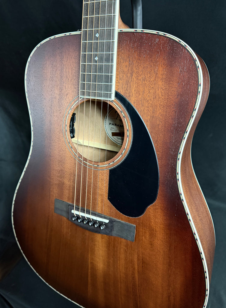 The Paramount PD-220E combines state-of-the-art craftsmanship with vintage-inspired appointments, delivering the best of both worlds. Built with the choice of a solid spruce or solid mahogany top paired with solid mahogany back and sides, the PD-220E features an offset X-bracing pattern that has been carefully refined to optimize resonance and tone. A brand-new Fender and Fishman®-designed Sonitone Plus pickup amplifies the full, balanced tone of the PD-220E’s dreadnought body shape, while the soundhole-mounted controls preserve the vintage aesthetics. Under the top, a body-sensing pickup enhances the soundboard's vibrations which can then be blended with the undersaddle Sonicore pickup.