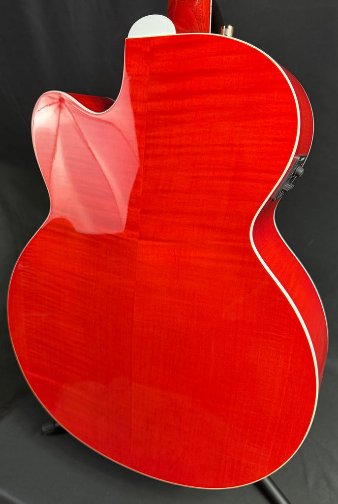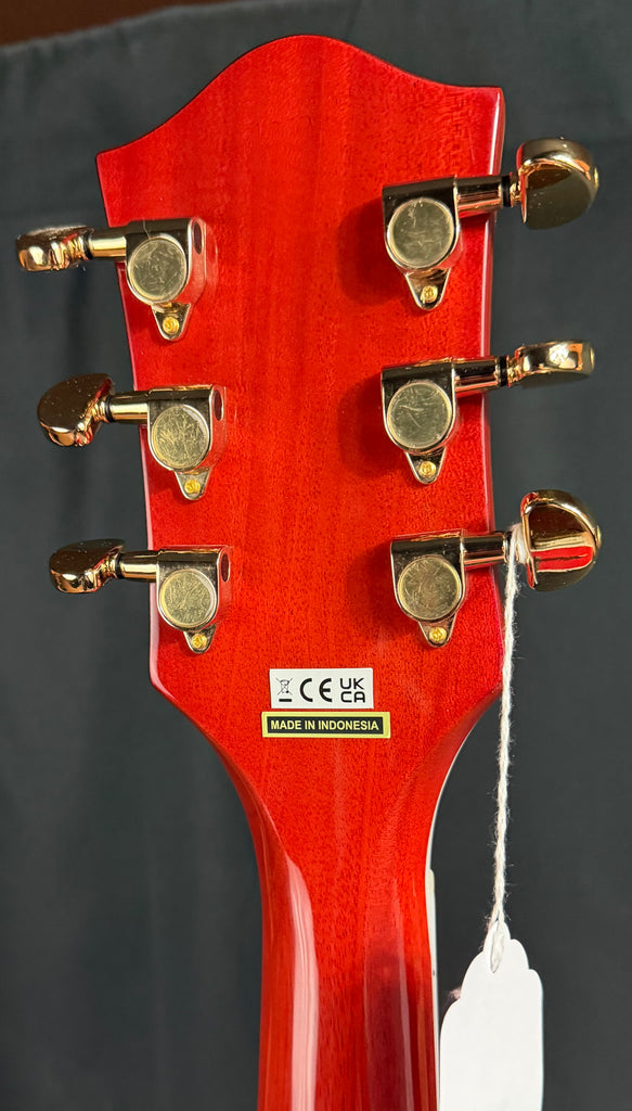 This Gretsch G5022CE Rancher Jumbo Cutaway Acoustic-Electric Guitar is used with "used" stamped on the back of the headstock. It is in excellent condition and shows no dings, dents, scratches, or any signs of obvious playwear. This guitar has been professionally set up and plays great! The neck is straight, the action is low and comfortable, and the frets are in excellent condition. Awesome deal on a great playing and sounding Gretsch G5022CE Rancher Jumbo!
