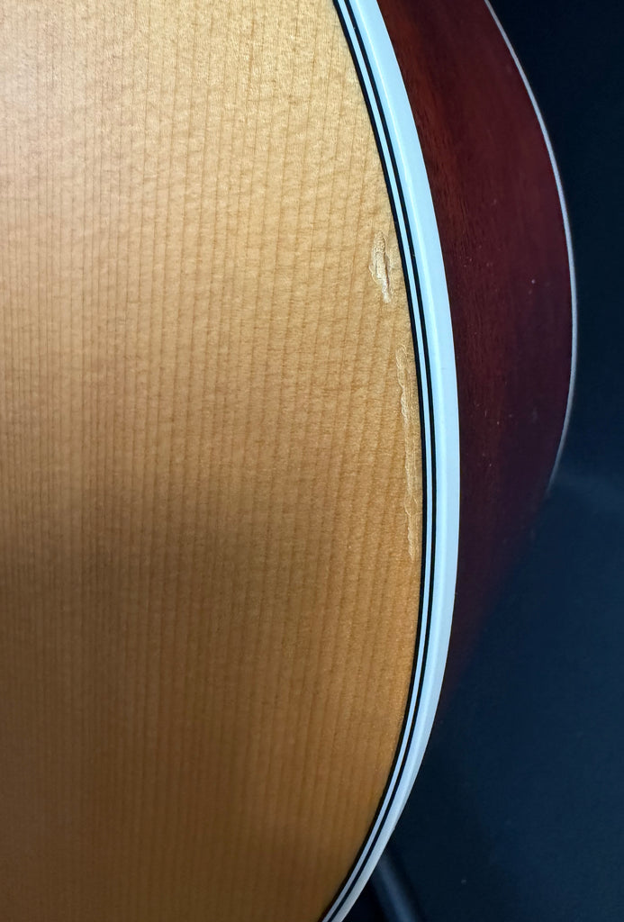 This 2017 Guild USA F-40 Jumbo is in excellent condition. It has been well cared for by its original owner although it does show some light playwear in the form of a small ding on the top at the lower bout as well as a small (1-2") fine surface crack on the back, bottom side of the body. Otherwise, this guitar is very clean and free from other dings, dents, scratches, or signs of heavy play. This guitar has been professionally set up and plays great! The neck is straight, the action is comfortable, and the frets are in excellent condition. This is a beautiful sounding jumbo that produces a bold and powerful sound while being overall very balanced and versatile. This guitar will come complete with the original Guild Humicase that is also in excellent condition. Awesome deal on a fantastic playing and sounding Guild F-40 Jumbo!