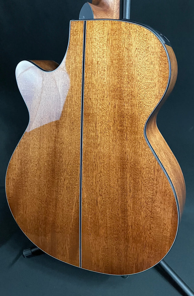 A great choice for any player seeking the well-balanced sound of a small-bodied guitar, the GF30CE combines a solid spruce top with mahogany back and sides that produce notable sweetness and articulation. The slim mahogany neck and 12”-radius ovangkol fingerboard provide great feel and playability, while the onboard Takamine TP-4TD preamp system gives you a built-in tuner with three-band EQ and gain controls for excellent amplified performance and versatility.