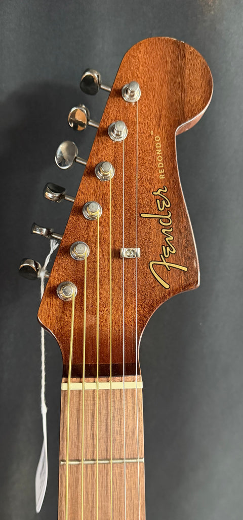 This Fender Redondo Player Dreadnought Acoustic-Electric Guitar is used with "used" stamped on the back of the headstock. It is in excellent condition and shows no dings, dents, scratches, or any obvious playwear. The guitar has been fully set up and plays great! The neck is straight, the action is low and comfortable, and the frets are in excellent condition. Awesome deal on a great looking and playing Fender Redondo Player Acoustic-Electric Guitar!