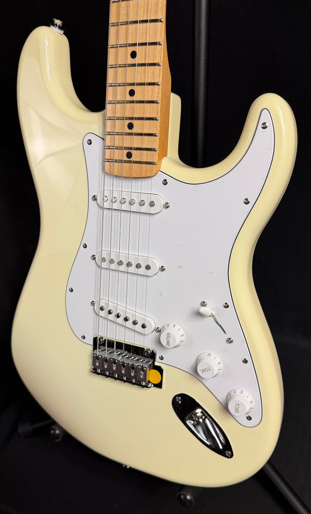 This 2025 Fender Standard Stratocaster Electric Guitar is used with "used" stamped on the back of the headstock. It is in excellent condition although it does show a fine finish check on the back, bottom side of the body (see picture). Otherwise, this guitar is very much in like-new condition and shows no dings, dents, scratches, or any obvious playwear. This guitar has been professionally set up and plays great! The neck is straight, the action is low and comfortable, and the frets are in excellent condition. Awesome deal on a fantastic playing and sounding Fender Standard Stratocaster in a gorgeous Olympic White Finish!