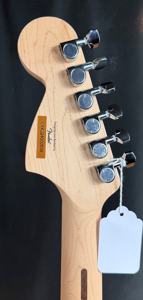 This 2024 Squier FSR Affinity Jaguar Electric Guitar is used with "used" stamped on the back of the headstock. It is in mint condition and shows no dings, dents, scratches, or any obvious playwear. This guitar has been professionally set up and plays great! The neck is straight, the action is low and comfortable, and the frets are in excellent condition. Awesome deal on a fantastic playing and sounding Squier FSR Affinity Jaguar in a gorgeous Mystic Seafoam Finish!