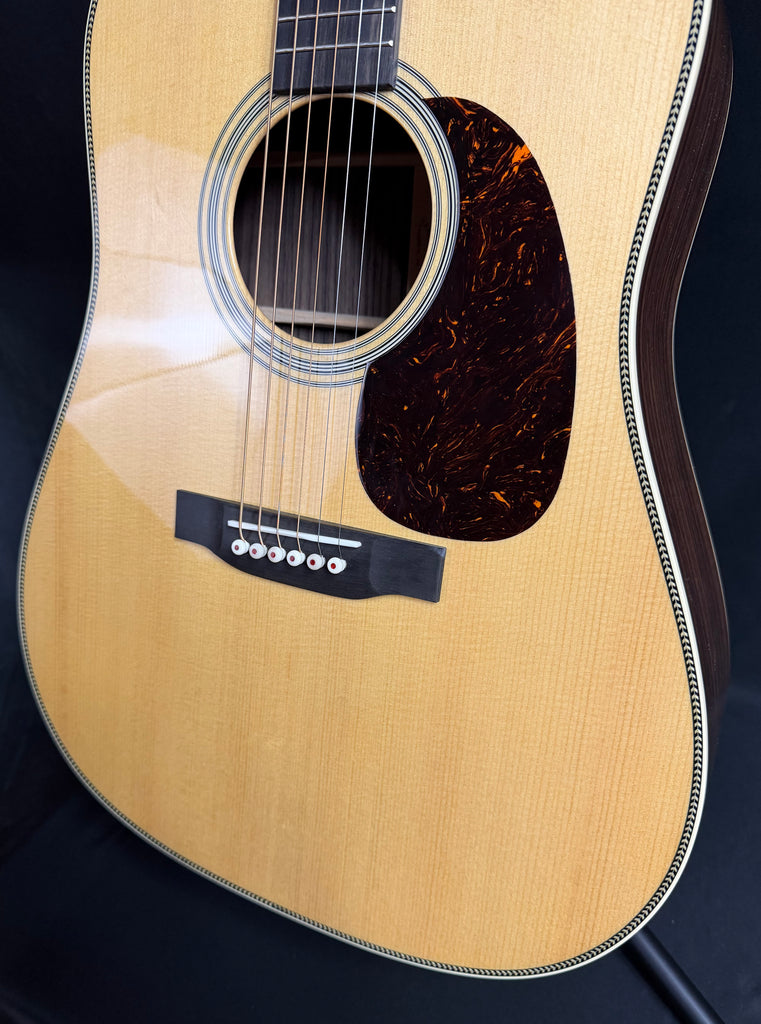 The Martin HD-28 is a legendary acoustic guitar, trusted by generations of players and played by countless icons across genres. Its Dreadnought body size and scalloped bracing delivers the bold, projective tone with strong bass, clear trebles, and rich overtones that has defined acoustic music for nearly a century. Handcrafted with a solid spruce top and solid East Indian rosewood back and sides, the HD-28 offers a resonant, balanced voice for all playing styles. Bold herringbone top inlay and an ebony fingerboard with abalone diamond and square inlays add a vintage-inspired touch. The satin neck, featuring a Golden Era (GE) Modified Low Oval profile, high-performance taper, and 25.4" scale length, ensures effortless playability. Complete with antique white binding, an ebony bridge with bone pins, and nickel open gear tuners, the HD-28 blends timeless craftsmanship with modern versatility. Available in a variety of gloss options, it’s a guitar you can trust to unleash the artist within.