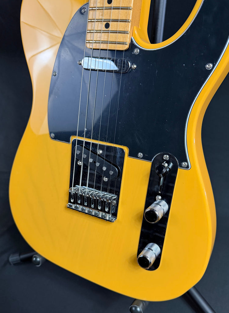 This 2025 Fender Player II Telecaster is used with "used" stamped on the back of the headstock. It is in mint condition and shows no dings, dents, scratches, or any obvious playwear. This guitar has been professionally set up and plays great! The neck is straight, the action is low and comfortable, and the frets are in excellent condition. Awesome deal on a fantastic playing and sounding Fender Player II Telecaster in a gorgeous Butterscotch Blonde finish!