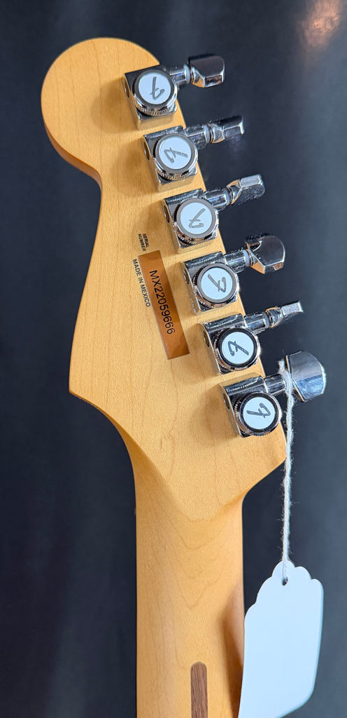 At the heart of this Strat® is a trio of Player Plus Noiseless™ pickups – bright and touch sensitive, they offer classic Strat tone without hum. A push-pull pot on the tone control adds the neck pickup to switch positions 1 and 2 for two sounds not usually found on a Strat®. The silky satin Modern “C” Player Plus Strat® neck fits your hand like a glove, with smooth rolled edges for supreme comfort. The 12” radius fingerboard and 22 medium jumbo frets facilitate fluid leads and choke free bends. Smooth and responsive, the 2-point tremolo provides classic vibrato effects, while the locking tuners provide rock-solid tuning and make string changes quick and easy.