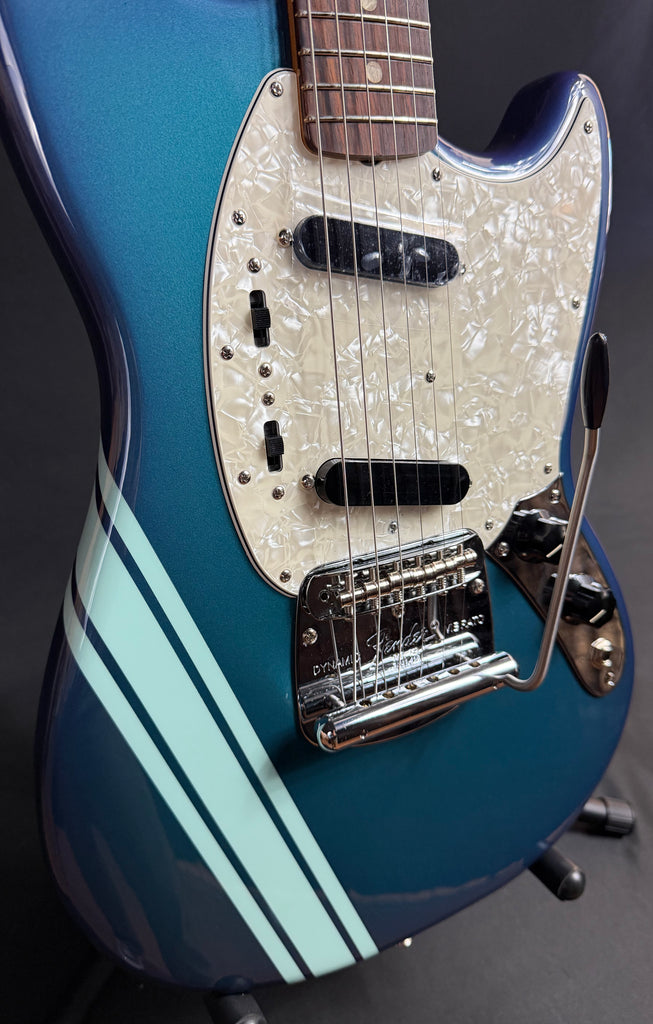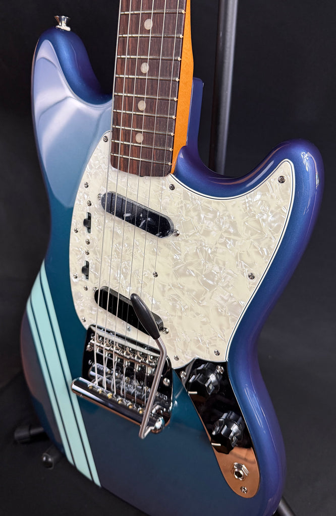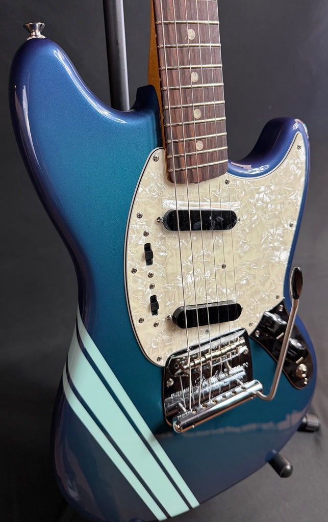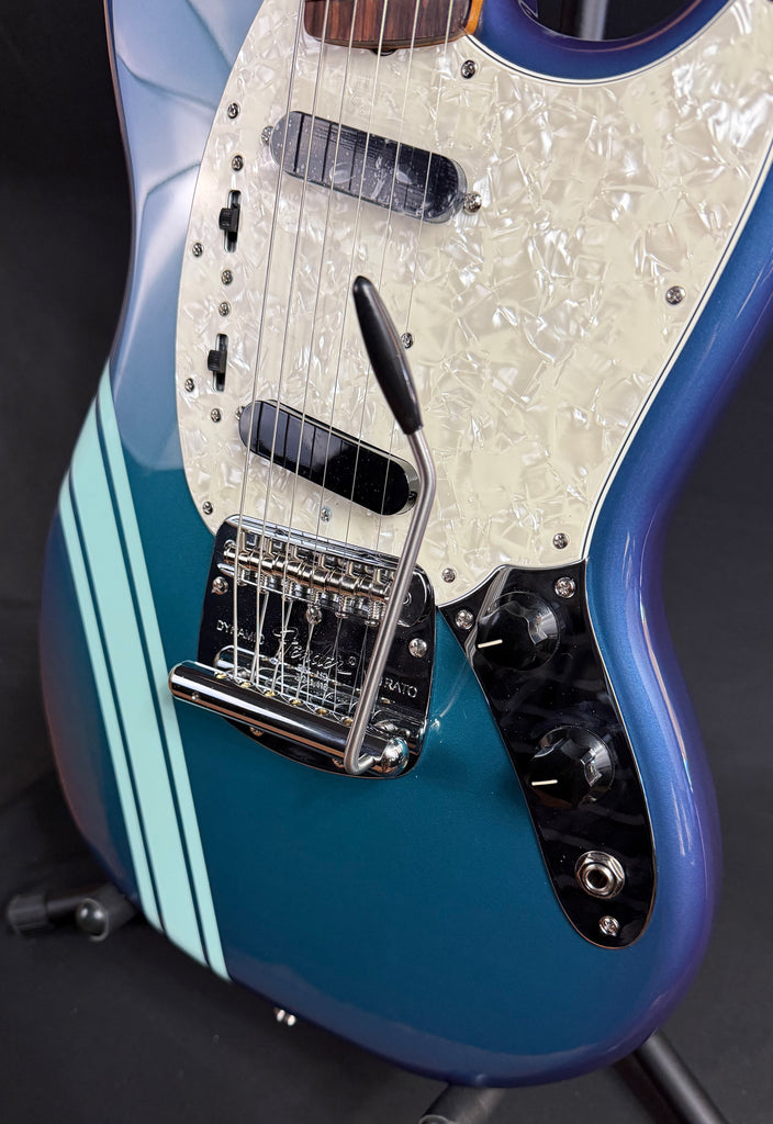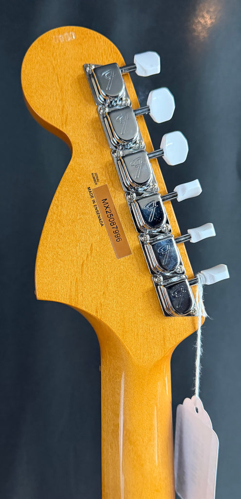 The Vintera® II '70s Competition Mustang® features an alder body and a maple neck with rosewood fingerboard for classic Fender tone that's full of punch and clarity. The early-'70s "C"-shape neck is based on a classic '70s profile for an intuitive and inviting feel, while the 7.25" radius fingerboard with vintage-tall frets provide vintage comfort with ample room for big bends and expressive vibrato. Under the hood, the vintage-style '70s single-coil pickups deliver all the sweet and sparkling, warm and woody tone that made Fender famous. The vintage-style Mustang® "floating" tremolo lets you dive and wail with abandon, while "F"-stamped tuning machines provide classic looks and enhanced tuning stability to complete the package.