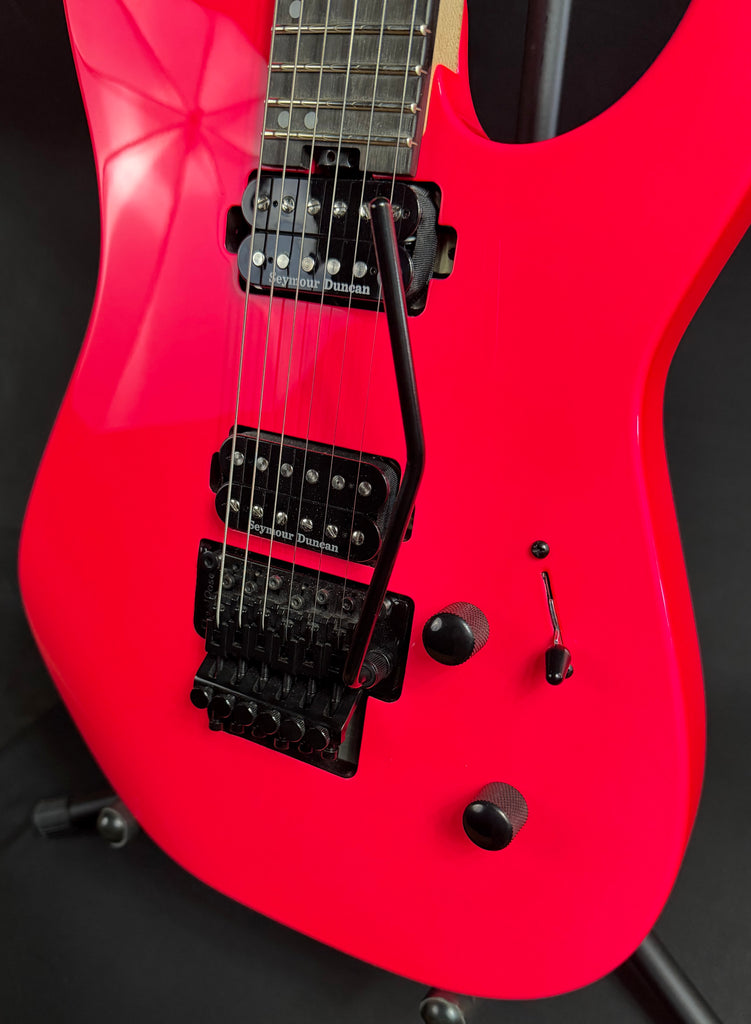 This 2020 Jackson Pro Series Dinky DK2 Electric Guitar is used with "used" stamped on the back of the headstock. It is in excellent condition although it does show a small finish check on the body near the neck (see picture). Otherwise, this guitar is very clean and shows no dings, dents, scratches, or any obvious playwear. This guitar has been professionally set up and plays great! The neck is straight, the action is low and comfortable, and the frets are in excellent condition. Awesome deal on a fantastic playing and sounding Jackson Pro Series Dinky DK2 in a gorgeous Neon Pink finish!