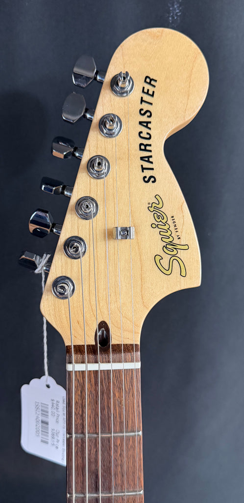 The Starcaster broke the mold of semi-hollow guitar design with its offset body shape when it was introduced in the ‘70s, offering versatile sound and out-of-this-world styling for the most adventurous players. This Squier model also features a unique contoured headstock, an adjustable bridge with stop tailpiece for solid tuning stability, durable chrome-plated hardware and a smooth satin neck finish for a natural feel.