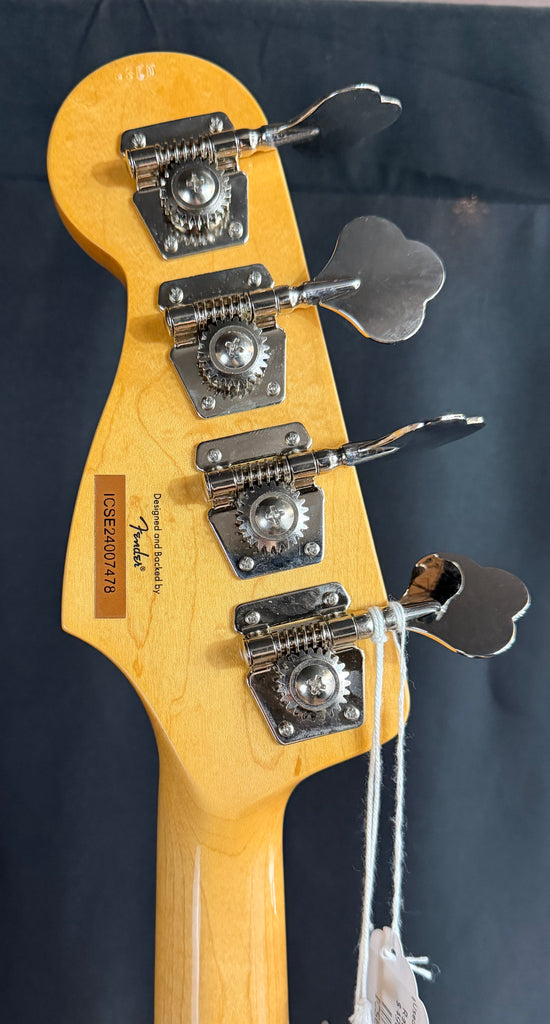 A tribute to the decade of its birth, the Classic Vibe ‘60s Jazz Bass® Fretless combines the luxurious playability that made it famous with the versatility and massive tone of its dual Fender-Designed alnico single-coil pickups. Player-friendly features include a slim, comfortable “C”-shaped neck profile with an easy-playing fretless fingerboard with fret lines for accurate finger placement and a vintage-style bridge with threaded saddles. This throwback Squier model also features 1960s-inspired headstock markings, rich-looking nickel-plated hardware and a slick vintage-tint gloss neck finish for an old-school vibe.