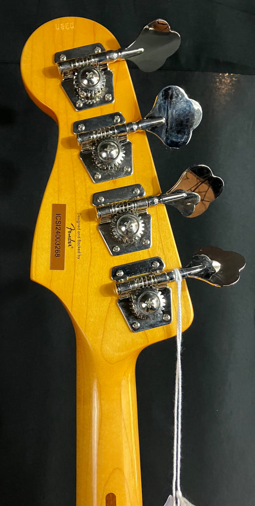 This 2024 Squier Classic Vibe 70's Jazz Bass is used with "used" stamped on the back of the headstock. It is in excellent condition although it does show a finish ding on the back, bottom side of the body (see pictures). Otherwise, this bass is very clean and shows no dings, dents, scratches, or any obvious playwear and the factory plastic is still intact on the pickguard. This bass has been professionally set up and plays great! The neck is straight, the action is low and comfortable, and the frets are in excellent condition. Awesome deal on a great playing and sounding Squier Classic Vibe 70's Jazz Bass!